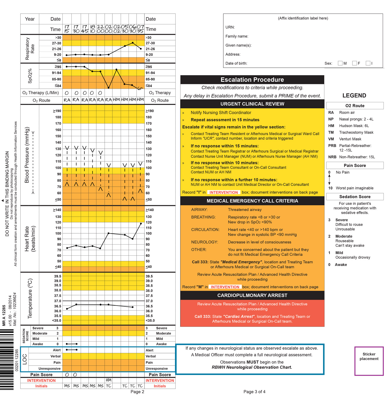 The below observation response chart shows the plotting and trending of the deterioration of a patient’s condition which was not recognised by the clinician. Unfortunately due to this lack of recognition and escalation of care the patient did not survive.